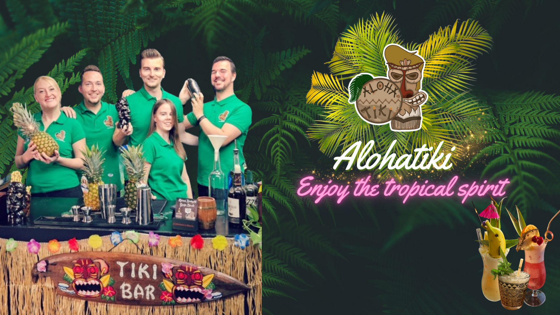 Mit Alohatiki genießt ihr eine mobile Bar für eure Hochzeit, die nicht einfach nur Cocktails serviert. Stellt euch vor, eure Gäste erleben exklusive Cocktails mit Feuer- und Trockeneispräsentationen, die jeden Drink zum Hingucker machen. Wir bringen die Eleganz und Exotik des Tiki-Stils zu eurer Hochzeit und sorgen mit fruchtigen Klassikern und kreativen Neuinterpretationen dafür, dass eure Gäste sich wie im Paradies fühlen. Sucht ihr also nach einer exklusiven Cocktailbar für eure Hochzeit oder einem besonderen Cocktail Catering in Böblingen, ist Alohatiki die perfekte Wahl.